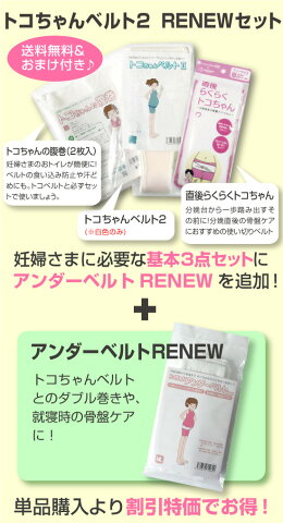 セット購入は単品購入よりもお得! →《単品》トコちゃんベルト2 →《単品》トコちゃんの腹巻 →《単品》直後らくらくトコちゃん →《単品》アンダーベルト RENEW ■セット内容 トコちゃんベルト2(白色/LL:H100〜120cm)×1 トコちゃんの腹巻<2枚組>(LL:丈60cm)×1 直後らくらくトコちゃん×1 アンダーベルトRENEW(LL:約H100〜120cm)×1 ※ベルトカラーは白色のみ(紺色へ変更ご希望の方はこちら) ※白ベルトのマジックテープ部分は若干ピンクがかった素材を使用しております。